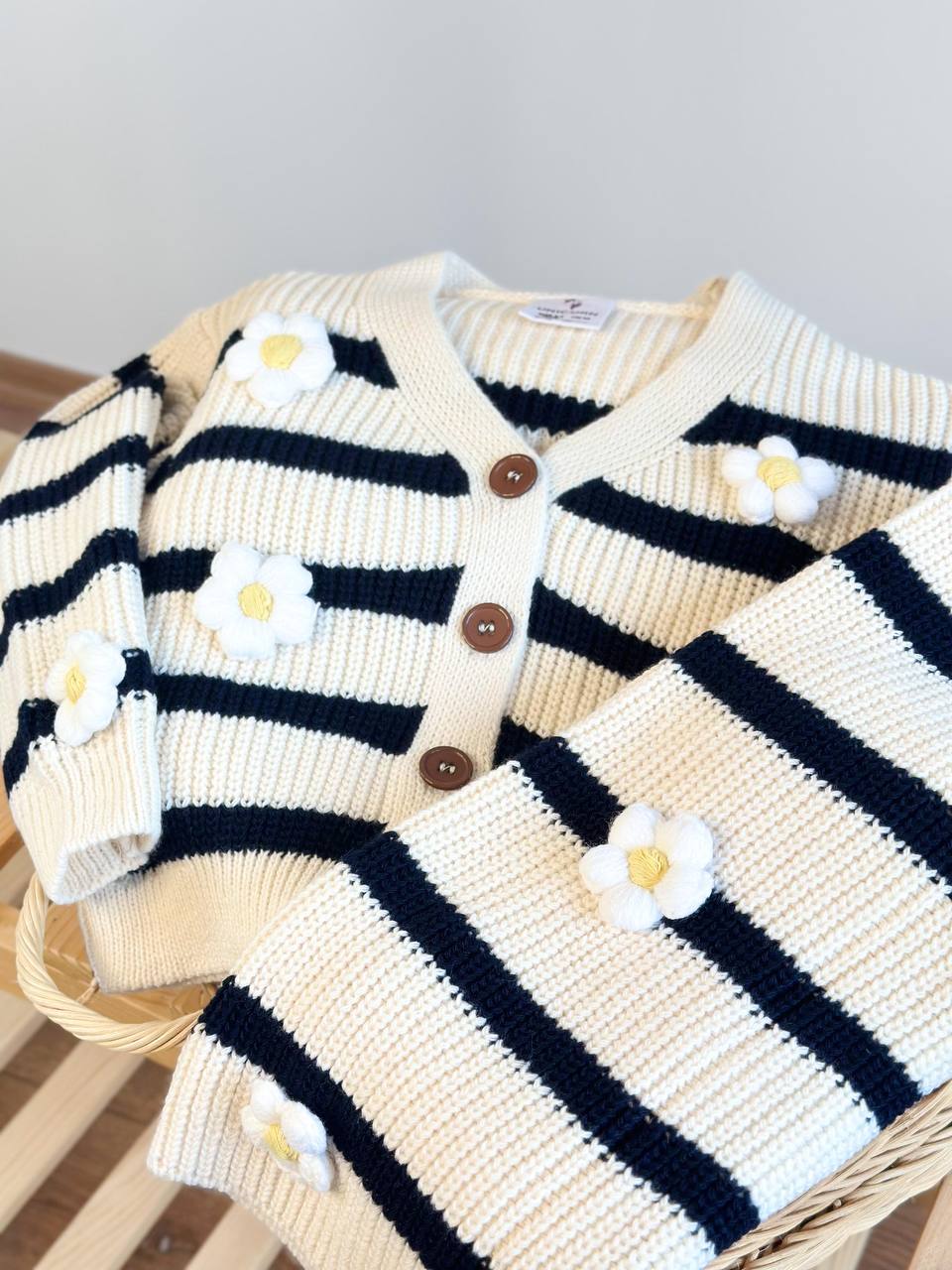 Ανάδειξε τη γλυκύτητα κάθε μικρής πριγκίπισσας με αυτό το μοναδικό πλεκτό σετ! Φτιαγμένο από απαλά, ποιοτικά νήματα και σχεδιασμένο με κομψές, χειροποίητες λεπτομέρειες, το σετ προσφέρει ζεστασιά, άνεση και υπέροχο στιλ σε κάθε εμφάνιση.